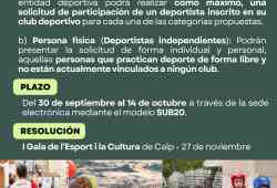 El Ayuntamiento de Calp ha publicado en el Boletín Oficial de la Provincia de Alicante las convocatorias de los Premios de Cultura y Deportes 2025, que se entregarán en el marco de la Gala del Deporte y la Cultura, prevista para el próximo 27 de noviembre en el Auditorio de la Casa de Cultura “Jaume Pastor i Fluixà”.
