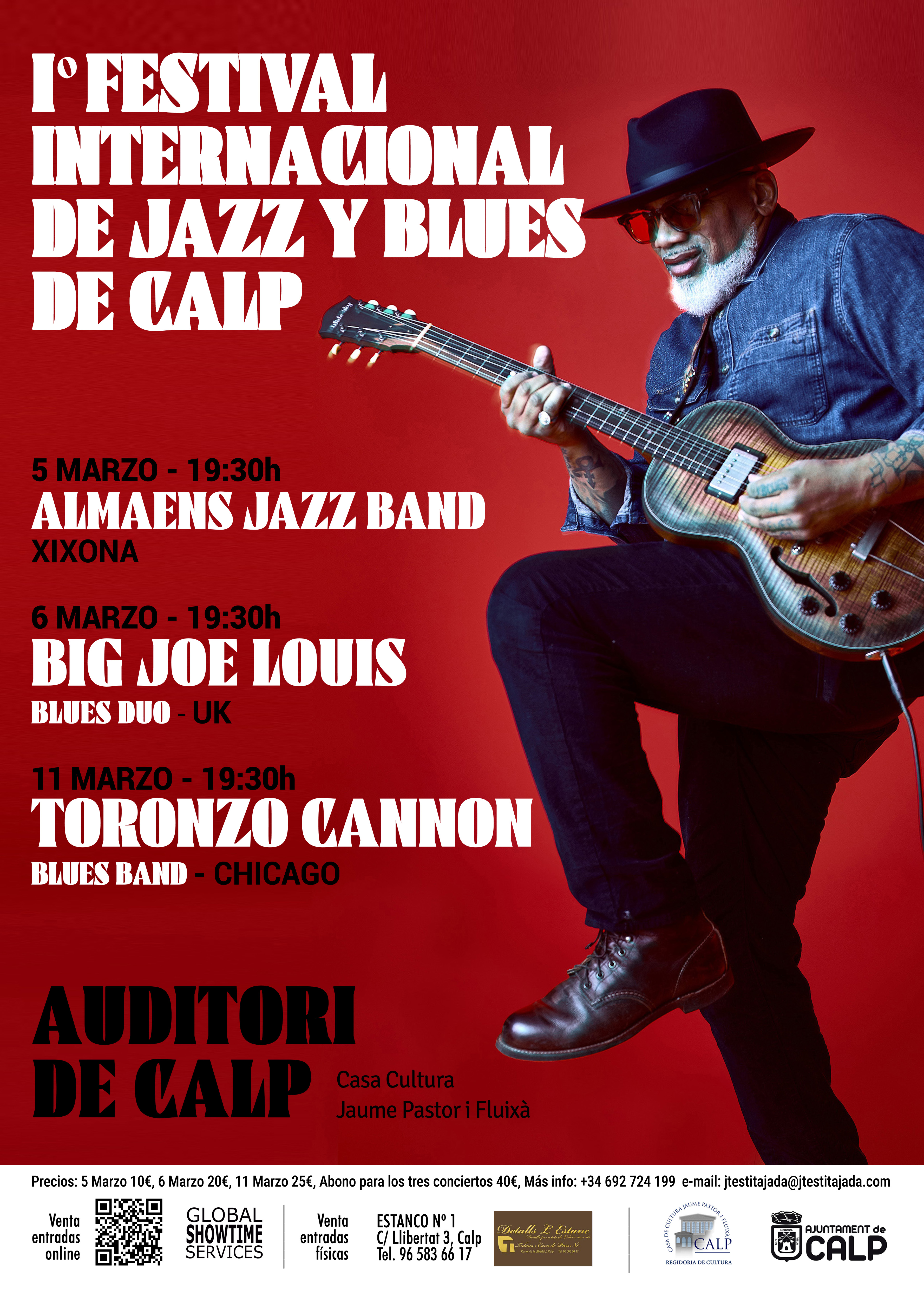 Entrée : 10,00 €. | Abonnement (limité à 100 abonnements) pour les trois concerts des 5, 6 et 11 mars : 40,00 € |. Vente anticipée : Bureau de tabac n° 1. (C/. Llibertat Calp) | Billetterie de l'Auditorium, le jour même du concert : 18h00.